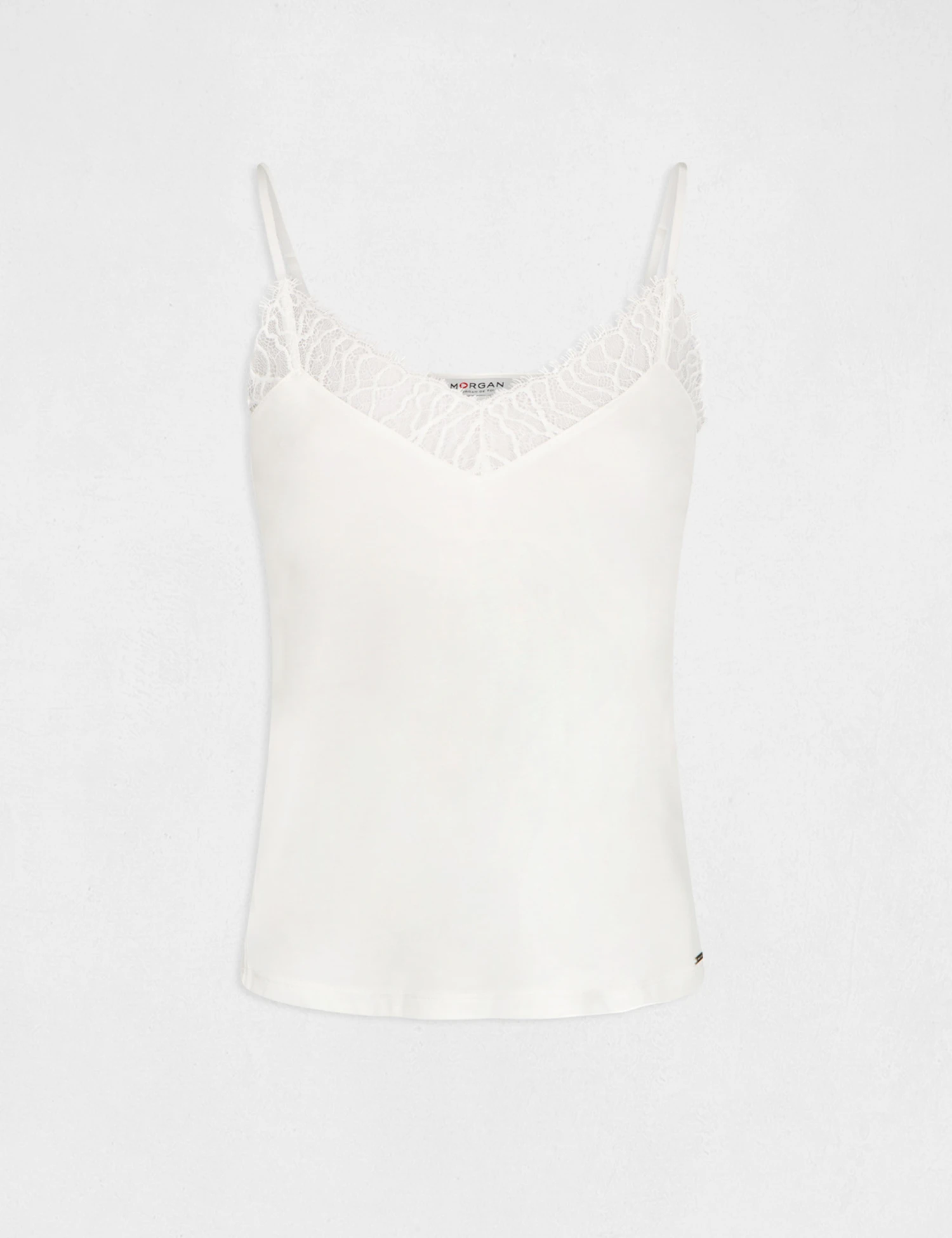 Empiècements dentelle avec bord festonné et franges à l¿encolure