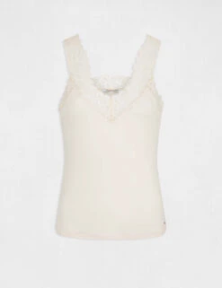 Empiècements dentelle avec bord festonné et franges à l¿encolure et aux emmanchures