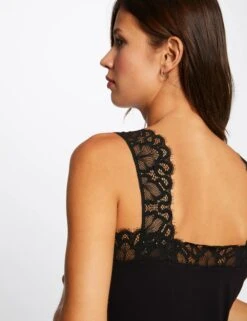 Empiècements dentelle avec bord festonné et franges à l¿encolure et aux emmanchures