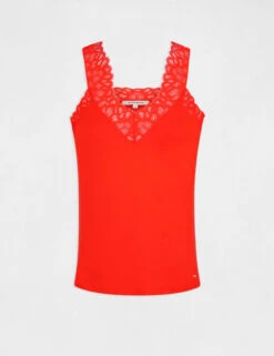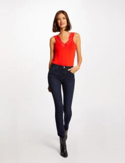 Empiècements dentelle avec bord festonné et franges à l¿encolure et aux emmanchures