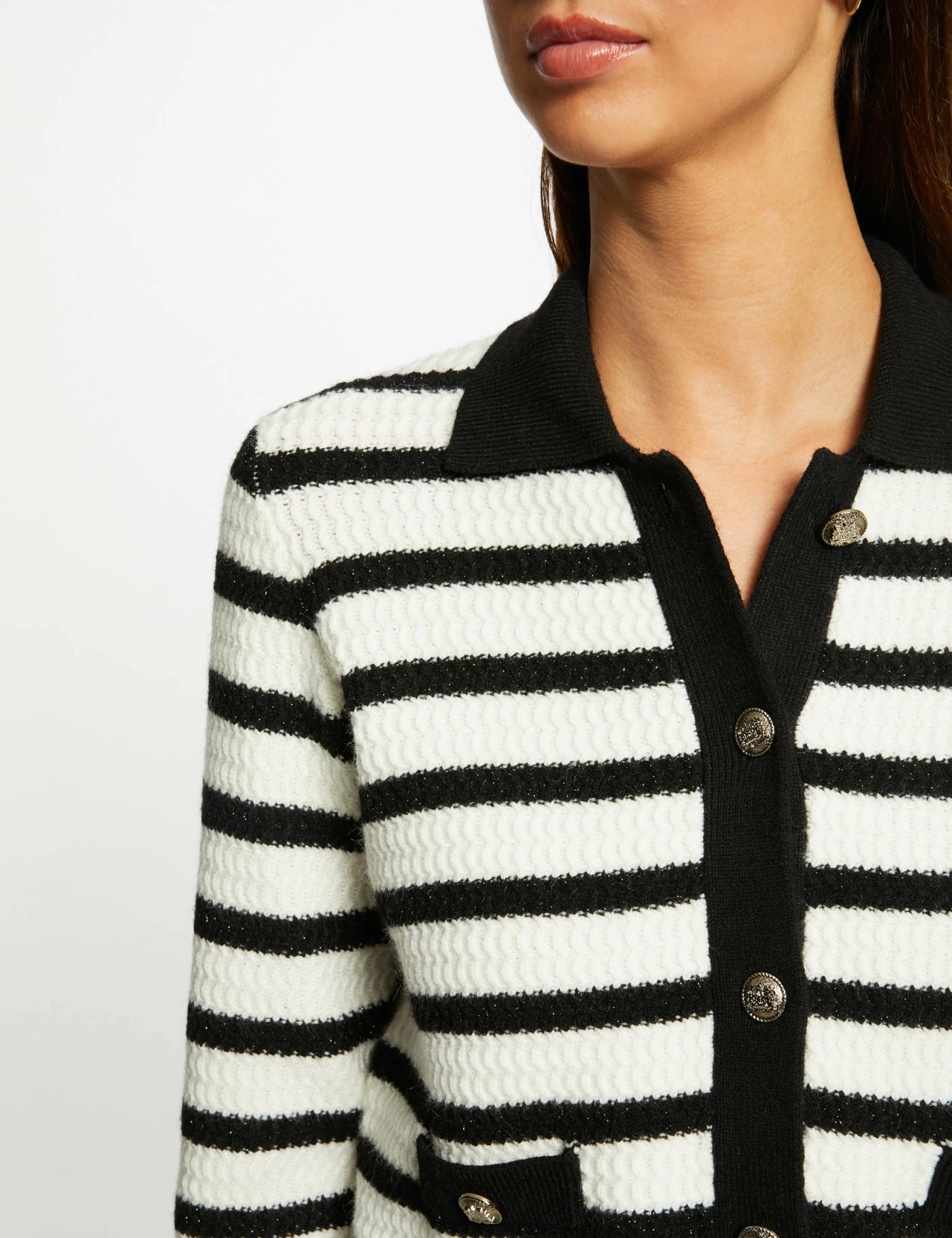 - Gilet droit boutonné à rayures