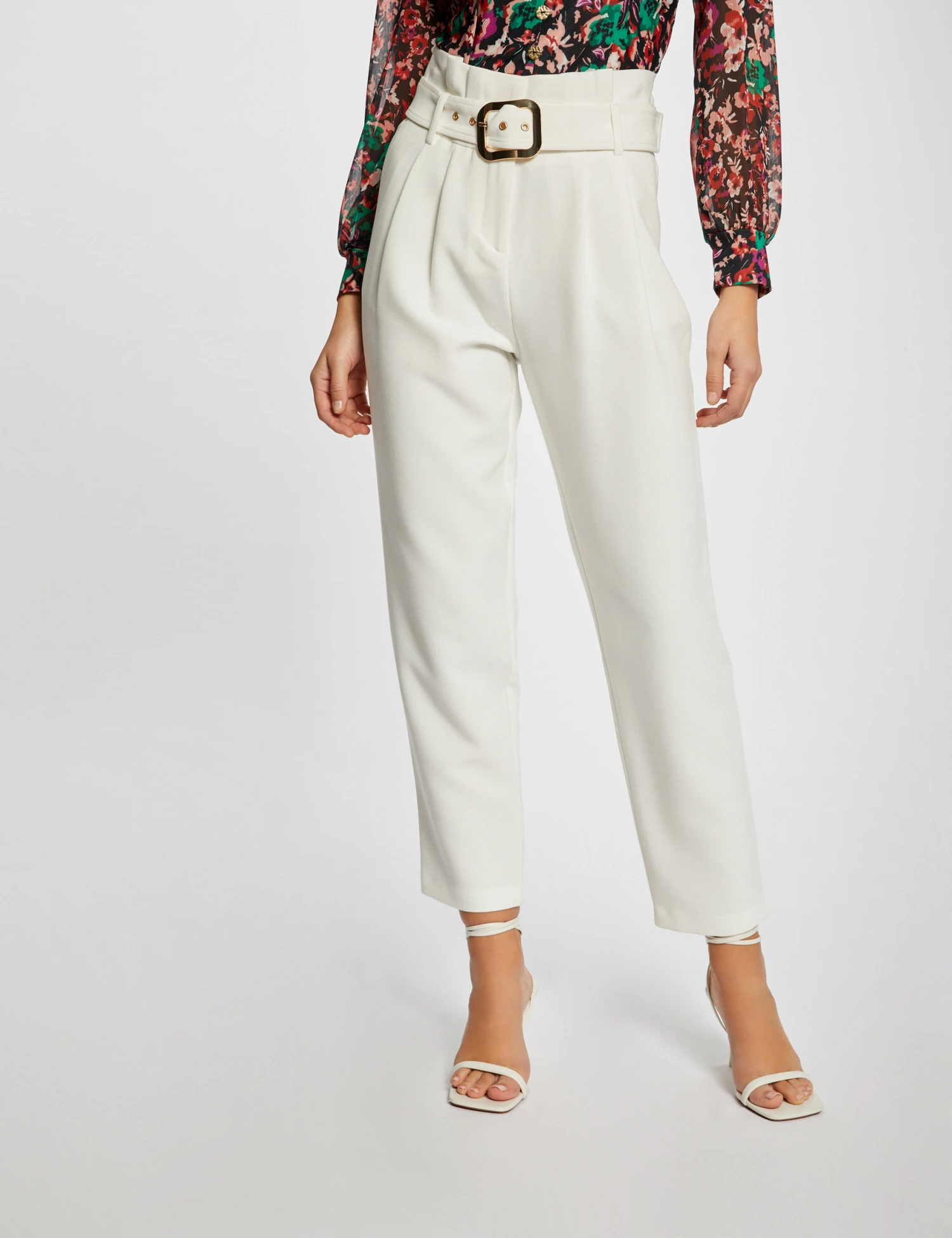 - Pantalon droit taille haute ceinturé