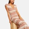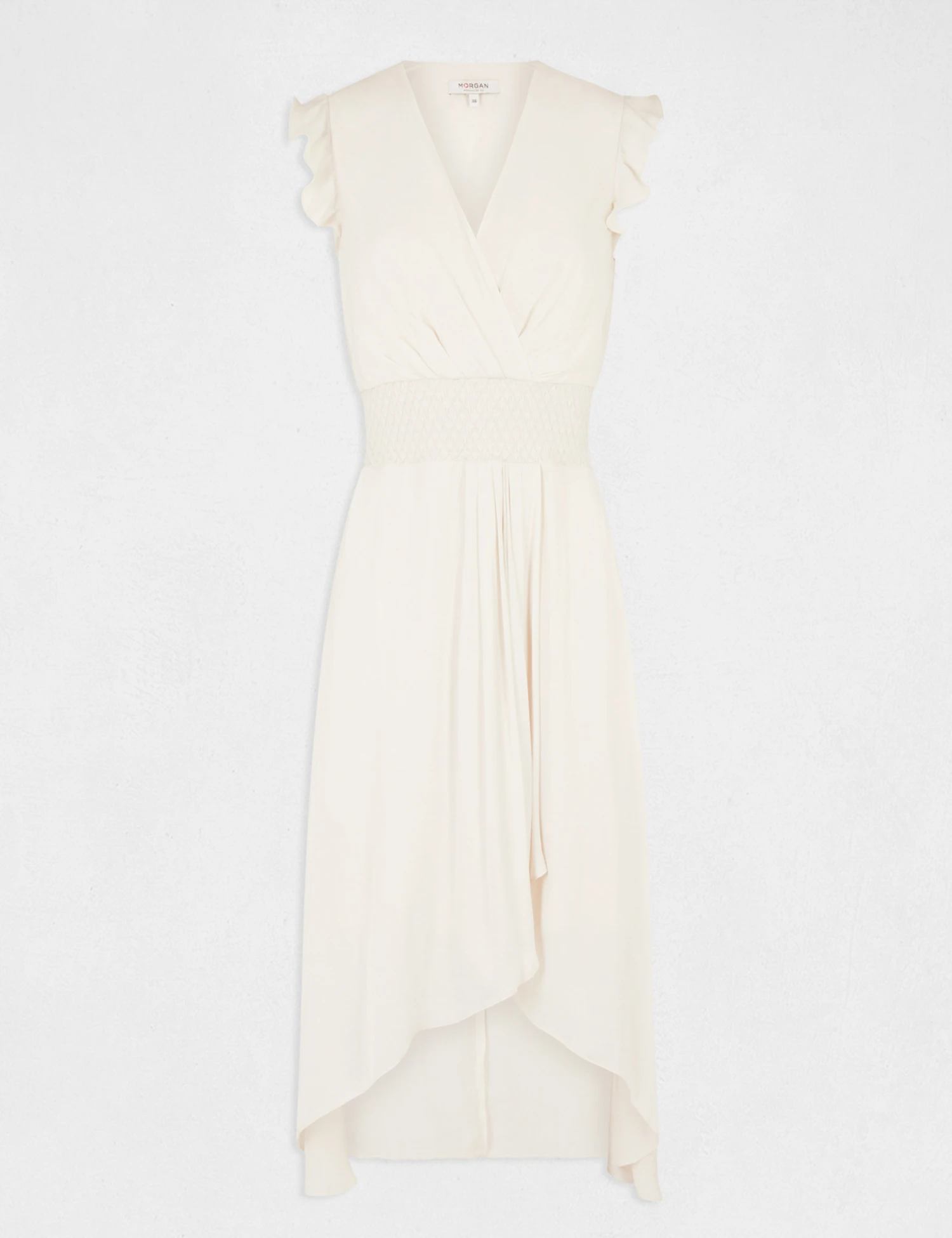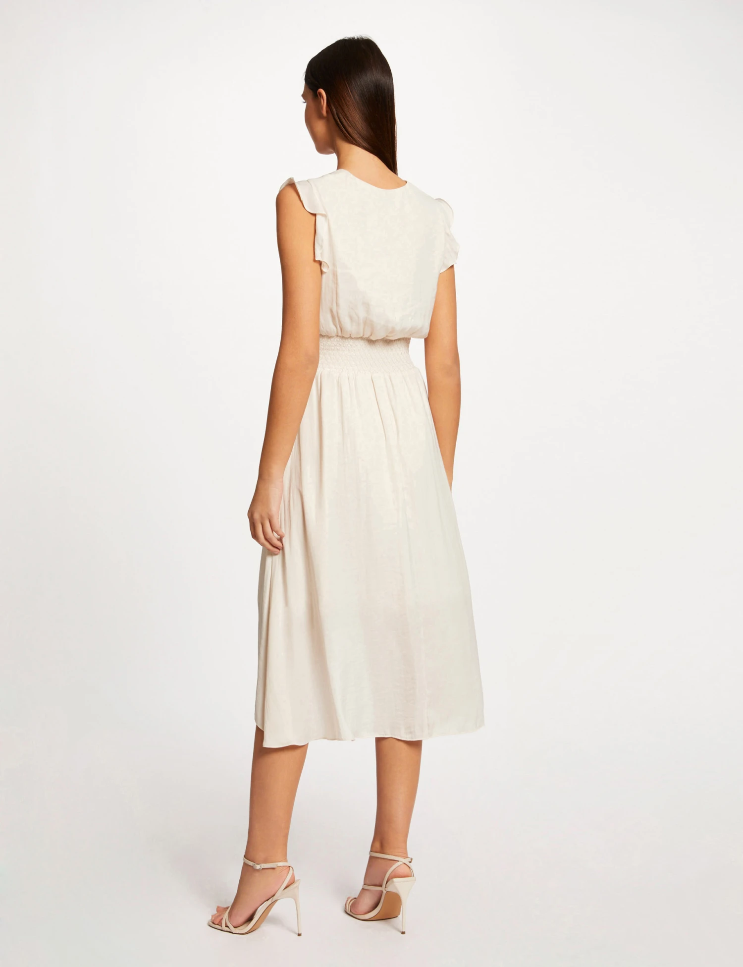 - Robe midi évasée fluide drapée smockée