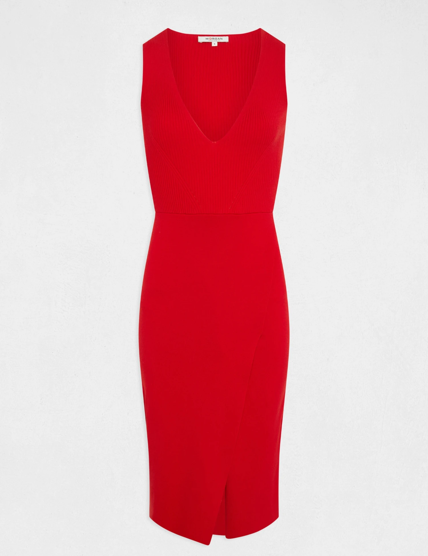 - Robe pull midi ajustée col en V