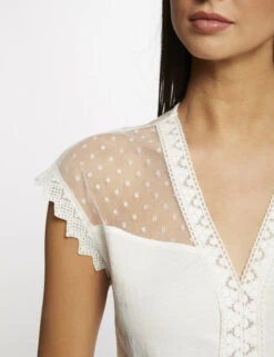 Empiècements dentelle à l¿encolure, aux manches et sur le buste