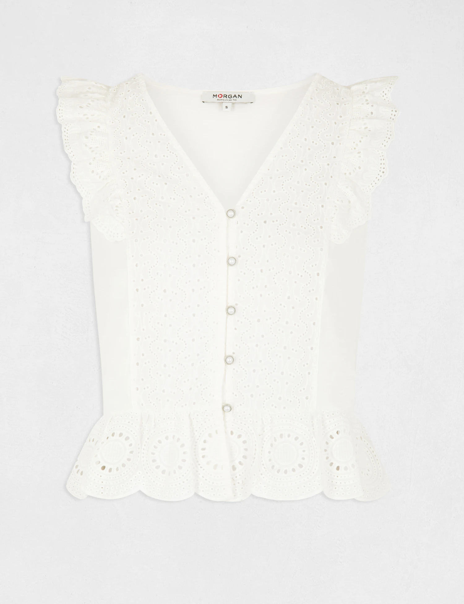 Empiècements avec volants aux manches, dans le dos et à la taille