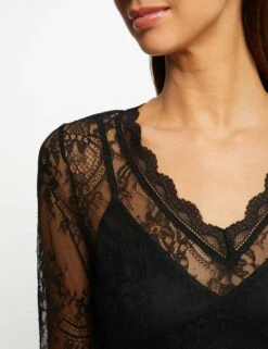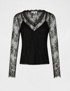 Empiècements dentelle avec jeu de transparence à l¿encolure, aux manches et dans le dos