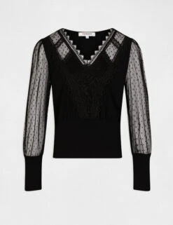 Empiècements dentelle avec bord festonné à l¿encolure et sur le buste