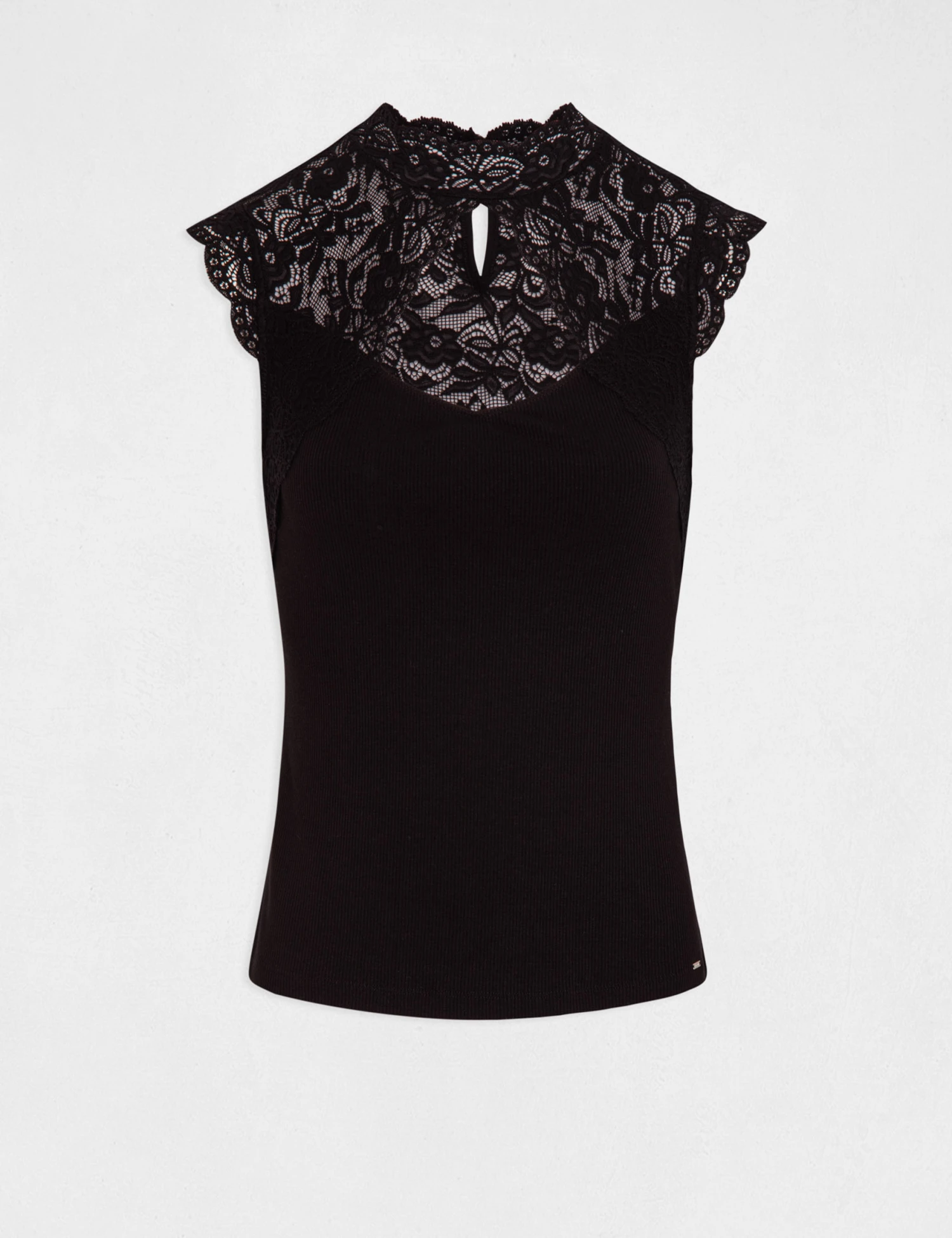 Empiècements dentelle avec bord festonné à l¿encolure, aux épaules et dans le dos