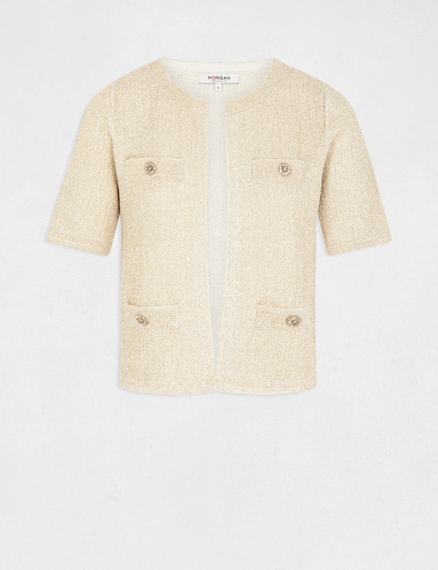 Bandes effet poches passepoilées avec un bouton décoratif sur le buste